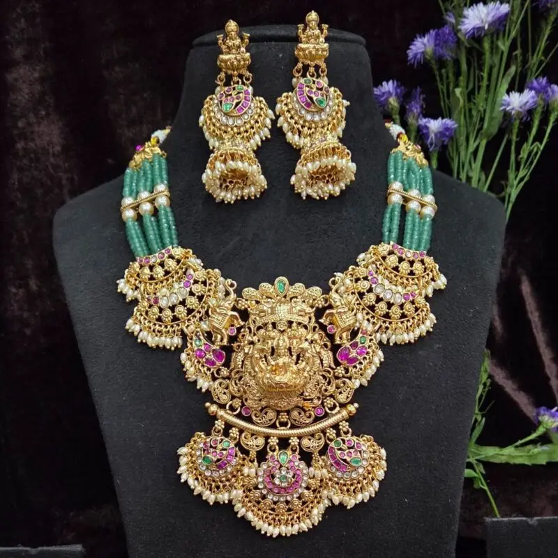 Nakshi Emerald Beads Necklace – Gold look alike